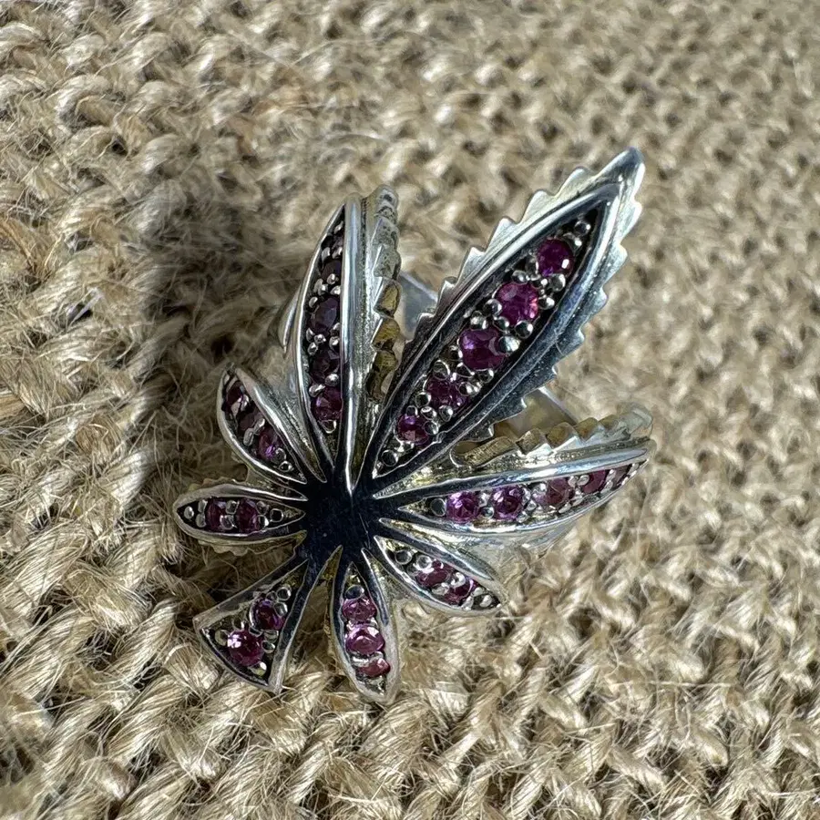 마리화나에 합성 루비가 들어 있습니다. 재질 - 실버 사이즈는 10.5호입니다.