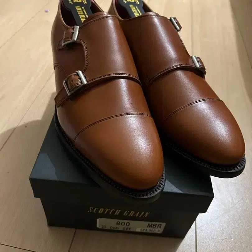 스코치 그레인 더블 몽크 스트랩 브라운 25.0cm