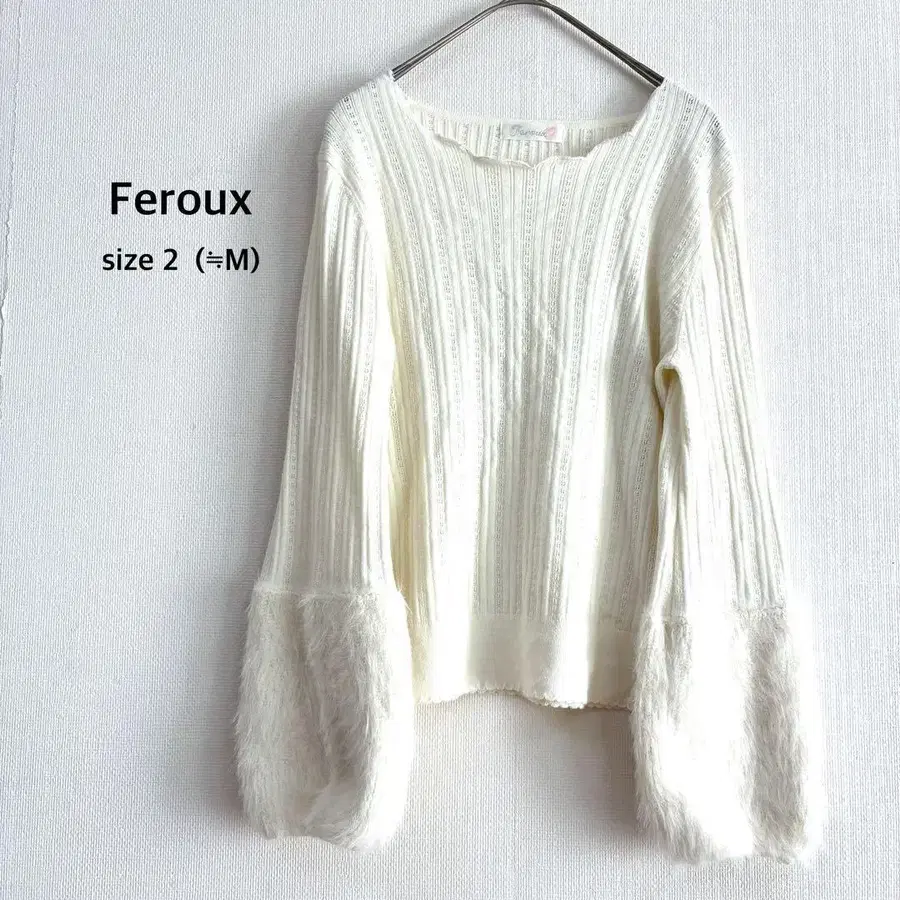 [페루] 니트 스웨터 M 화이트 소매 퍼 절개 이벤트 데이트 티셔츠