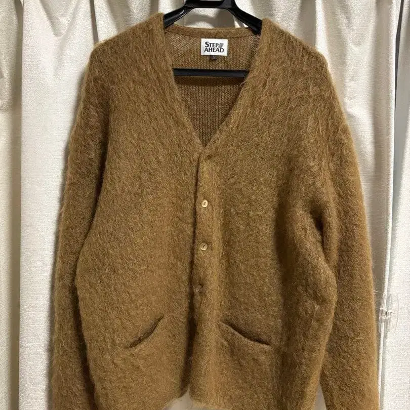수년 전에 구매한 STEP AHEAD의 Mohair Cardigan입니다. 거의 착용하지 않아 판매합니다. 털이 긴 70% Mohair, 30% Nylon 커스텀 오더 실을 사용하여 털을 길게 내고, 버튼은 자연스러운 광택과 질감의 천연 소재 쉘 버튼을 사용했습니다. 앞면에 포켓이 있습니다. - 색상: 브라운, 카멜 - 디자인: V넥 가디건 - 소재: 모헤어 소재 - 포켓: 앞면에 포켓 있음 - 버튼: 앞면에 버튼 있음 사이즈 - L 어깨 너비/가슴 너비/소매 길이/기장 어깨 너비 - 55cm 가슴 너비 - 57cm 소매 길이 - 63cm 기장 - 70cm 색상 - 브라운 계열 계절감 - 가을, 겨울 얼룩, 찢김, 냄새 등 - 없음