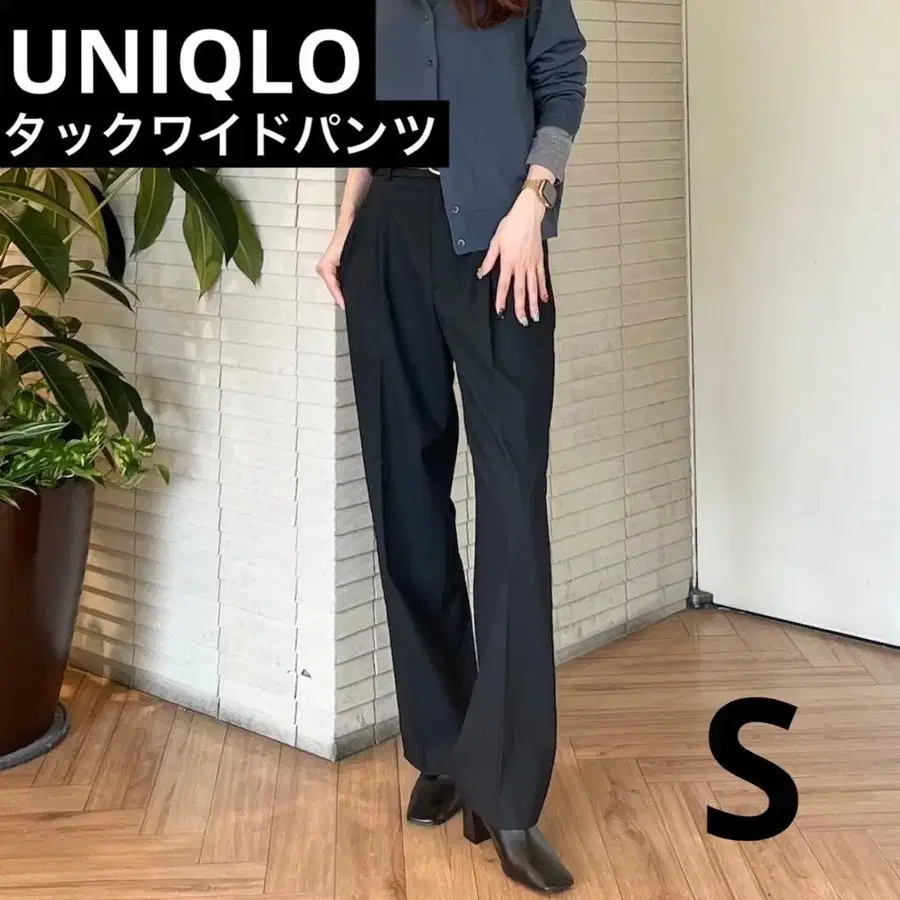 인기 상품인 턱 와이드 팬츠 블랙입니다! 오피스에서도 활약합니다!