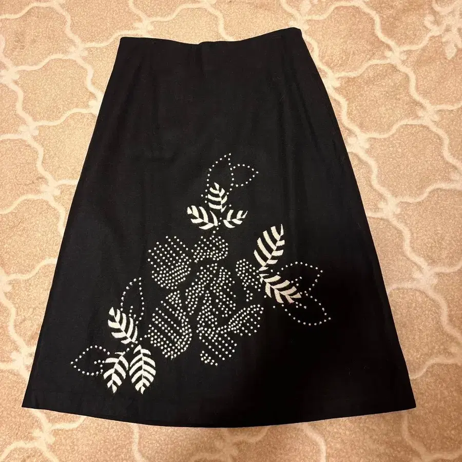 잎사귀 패턴 자수가 특징인 블랙 플레어 스커트. - 색상: 블랙 - 디자인: 잎사귀 패턴 자수 - 스타일: 플레어 스커트 - 뒷면 디자인: 센터 심 방문해 주셔서 감사합니다. 사이즈 - XL(LL) 허리 평평하게 놓았을 때 약 38cm 기장 약 73cm