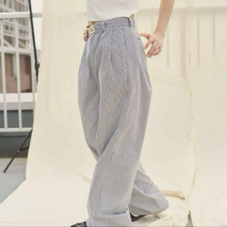 해크 스트라이프 와이드 팬츠 M 사이즈