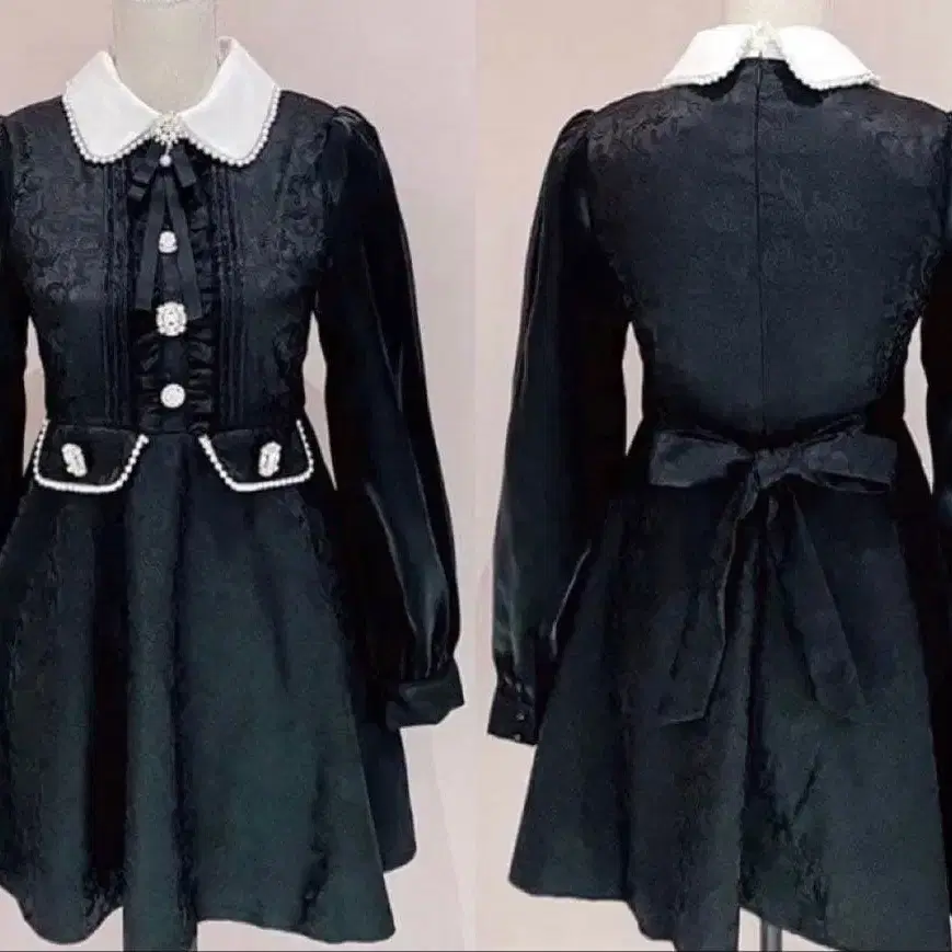 Ank Rouge 앙크루즈 펄 카라 스핀들 원피스 리본 M