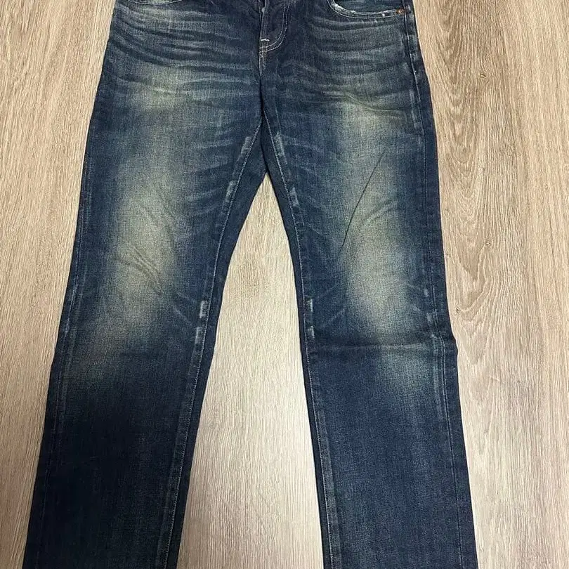 다크 블루 스트레이트 레그 데님, 페이드 가공 있음. - 색상: 다크 블루 - 디자인: 스트레이트 레그 - 허리: 버튼 플라이 - 특징: 페이드 가공 - 스타일: 캐주얼 사이즈 표기 31 길이 포장 완료 방문해 주셔서 감사합니다.