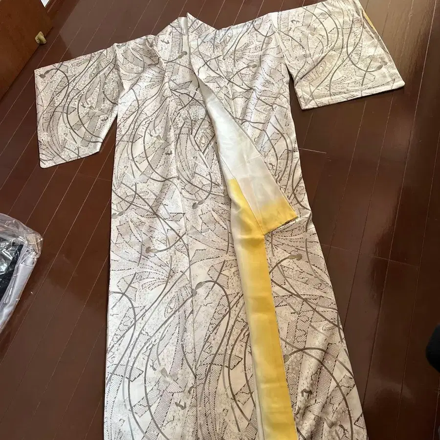 아주 좋은 물건입니다. 사진으로는 아름다움이 반감되었지만, 광택이 있어 아름다운 기모노입니다. 한 번도 착용하지 않았지만, 10년 이상 전에 구매 후 보관했기 때문에 얼룩 등은 없지만, 기모노 옷장의 냄새가 조금 있습니다. 기장 158 소매 길이 47 화장 60