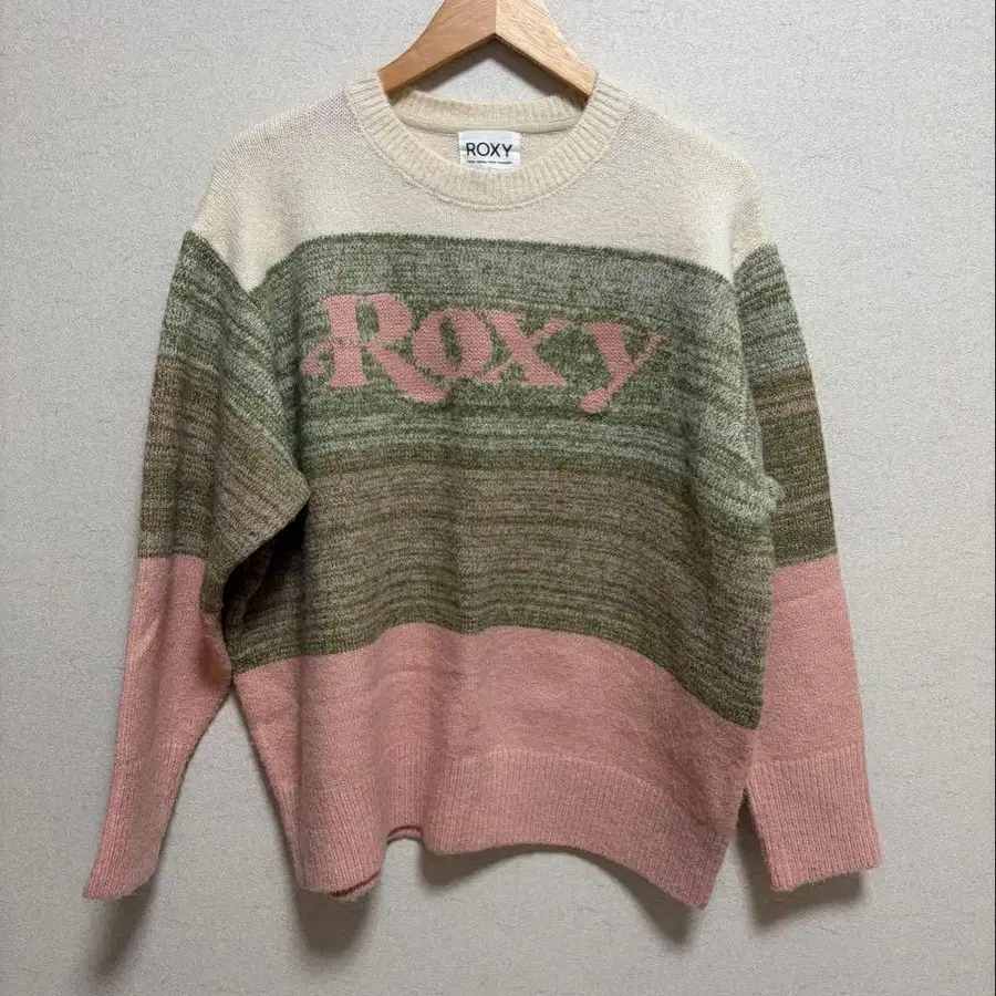 ROXY 록시 보더 무늬 스웨터 핑크 그린