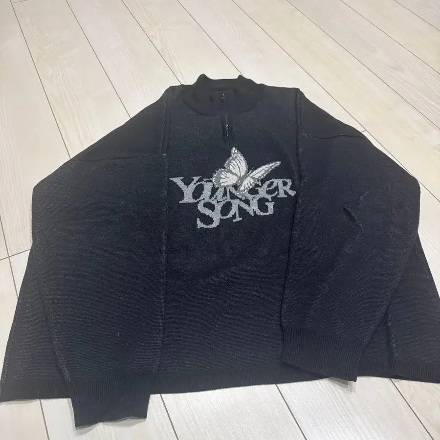 나비 자수가 들어간 니트 스웨터. - 색상: 블랙 - 디자인: 나비 자수와 로고 ※ 옷깃 부분에 약간의 보풀이 있지만 착용 시에는 보이지 않는 부분입니다. 하우스 클리닝 완료되었습니다. 방문해 주셔서 감사합니다.