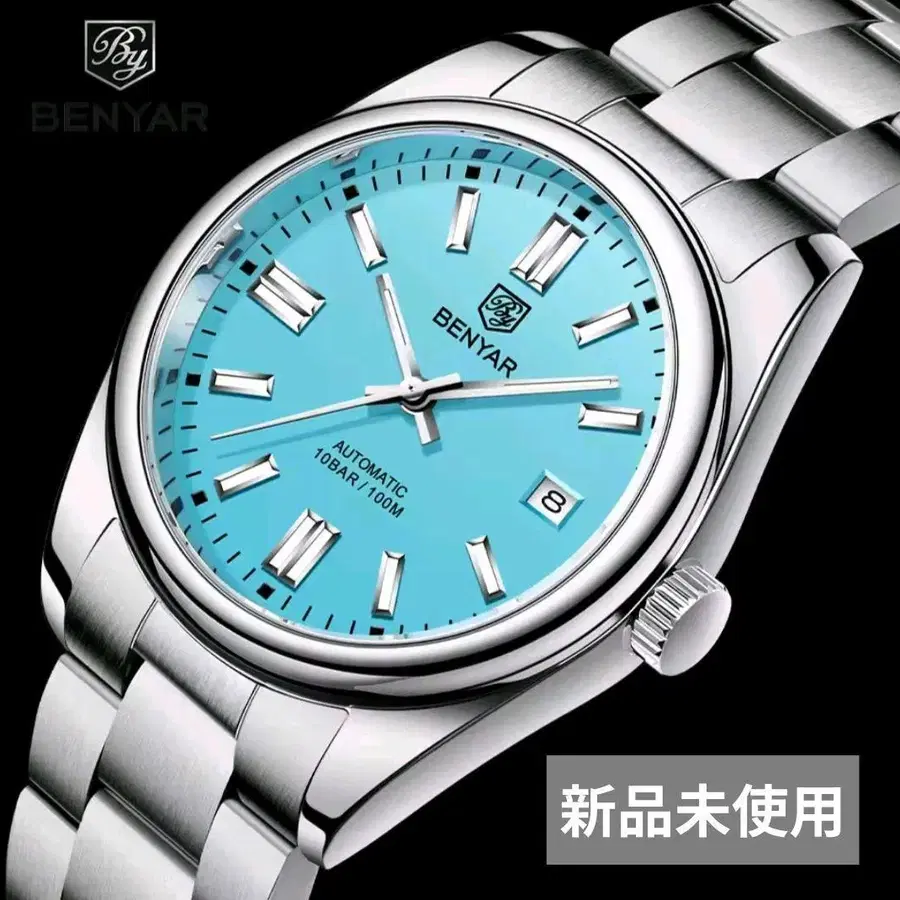 해외 인기 시계 제조사 [BENYAR]의 자동 와인딩 손목시계입니다. 무게감과 질감이 있으며, 선명한 터콰이즈 블루 색상으로 미사용 새상품입니다. 풀세트(상자, 크로스, 설명서, 멤버 카드)로 보내드립니다.
