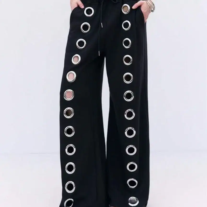 롱 팬츠 실버 반지 사이즈 M ( 허리 62~102cm, 인심 74cm ) 색상 블랙 시착만 한 상품 즉시 구매 가능 theredthread 더 레드 스레드