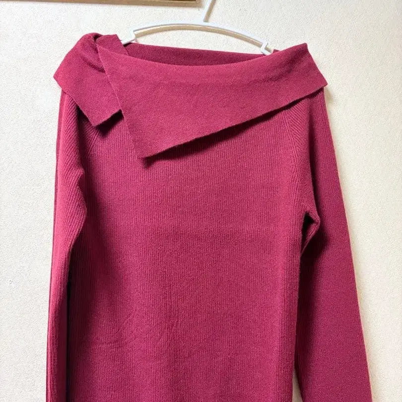 버건디 오프숄더 긴팔 니트