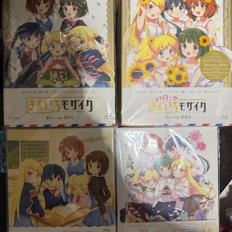 금빛 모자이크 Blu-ray BOX (1기) Hello! 금빛 모자이크 Blu-ray BOX (2기) 금빛 모자이크 Pretty Days Blu-ray 극장판 금빛 모자이크 Thank you!! 럭셔리판 Blu-ray BOX 세트입니다. 한 번 개봉하여 시청한 상태입니다.
