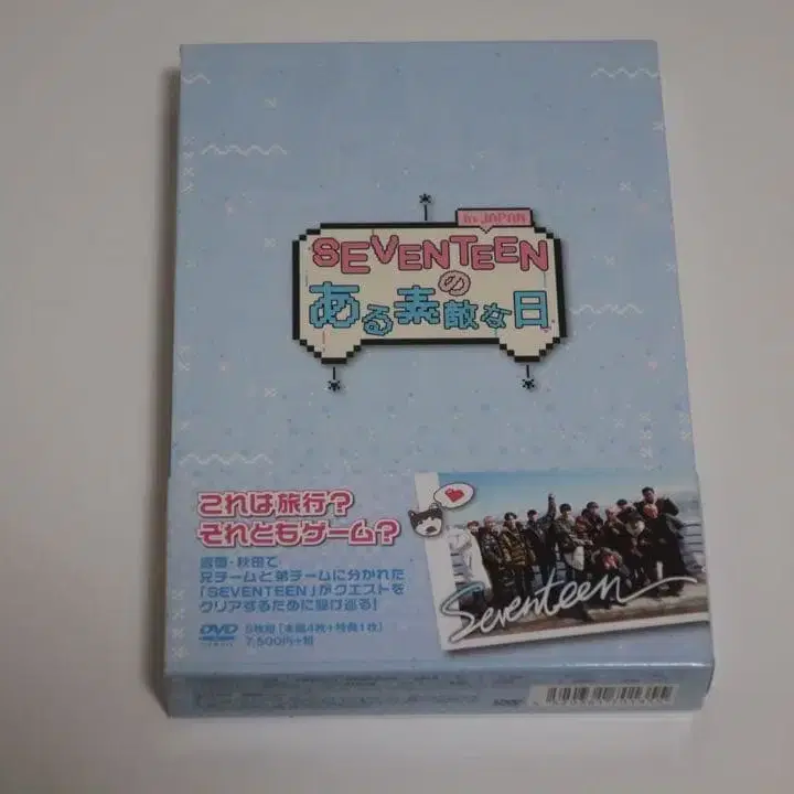 SEVENTEEN의 어느 멋진 날 in Japan 세부치의 2018년에 출시된 DVD입니다. 엽서도 함께 드립니다. - 타이틀: SEVENTEEN의 어느 멋진 날 - 미디어 타입: DVD - 언어: 일본어 - 정가: 8250엔 방문해 주셔서 감사합니다.