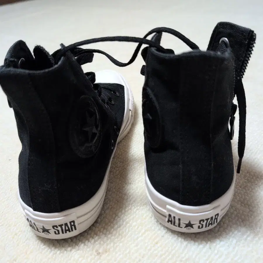 지퍼가 달린 블랙 하이컷 스니커즈. - 브랜드: ALL STAR - 색상: 블랙 - 디자인: 하이컷 - 특징: 지퍼 포함 - 소재: 캔버스 방문해 주셔서 감사합니다. 신으려고 구매했지만, 하이컷을 신을 기회가 별로 없어 판매하게 되었습니다. 잘 부탁드립니다.