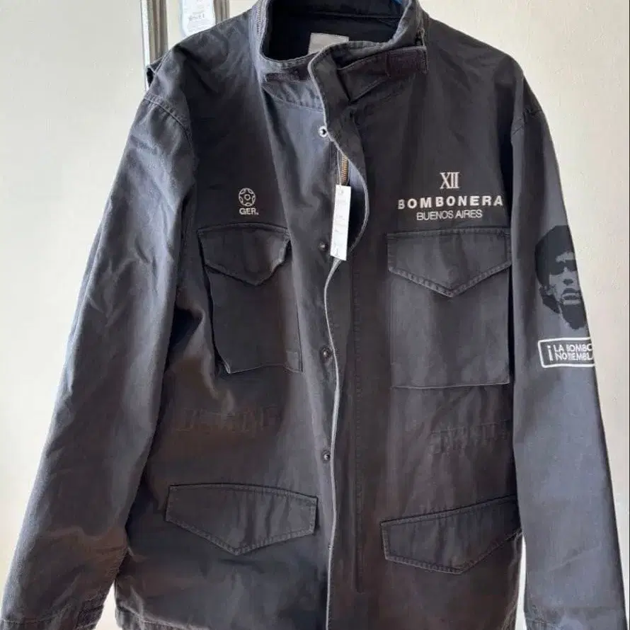 본보네라 마운틴 자켓 표기 L 사이즈 컬러 그레이 소재 코튼 100% 옷깃에 척이 있지만 후드는 없음 (사진 8장) 양 가슴에 포켓 있음 정면 오른팔에 마라도나 선수 프린트. 가격 인하 불가.