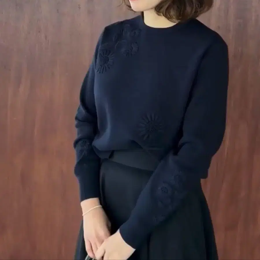 OHGA MARGARET KNIT 마가렛 니트 온라인으로 구매하여 5회 정도 착용했습니다. 사진 7번째, 자수 부분에 올풀림이 있습니다. 컬러 - 네이비 사이즈 - 프리 사이즈 완판된 인기 아이템입니다. 상품 설명 - 꽃 자수가 포인트인 심플한 니트 자수 부분은 은은한 입체감을 주어 세련된 아이템으로 완성했습니다. 적당히 여유 있는 사이즈감으로 스타일업 효과도 확실합니다. 팬츠는 물론 스커트와도 궁합이 좋습니다. 사이즈 - FREE SIZE