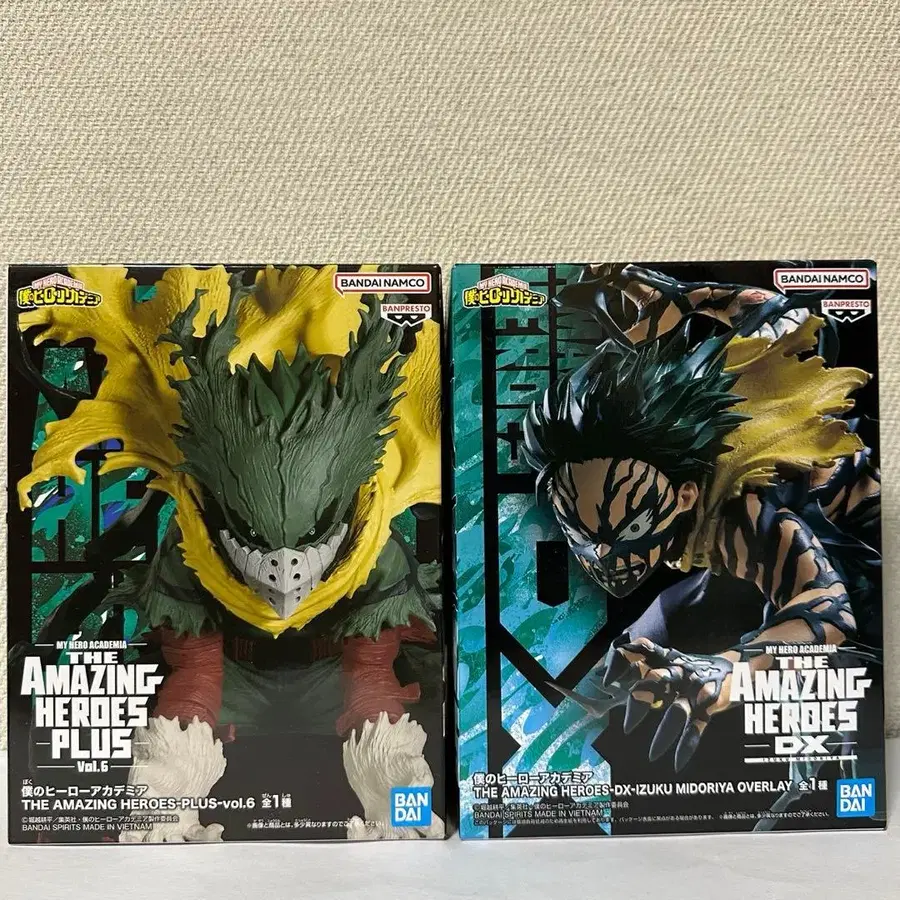나의 히어로 아카데미아 THE AMAZING HEROES-PLUS- vol.6 미도리야 이즈쿠 (블랙 데쿠) 나의 히어로 아카데미아 THE AMAZING HEROES-DX-IZUKU MIDORIYA OVERLAY 미도리야 이즈쿠 (오버레이) 2개 세트 낱개 판매, 가격 인하 불가 미개봉품입니다. 인형뽑기 경품이므로, 경품을 획득할 때 발생할 수 있는 흠집이나 찍힘 등은 양해 부탁드립니다. 에어캡으로 포장하여 종이상자에 넣어 발송합니다. 즉시 구매 가능합니다. 묶음 판매