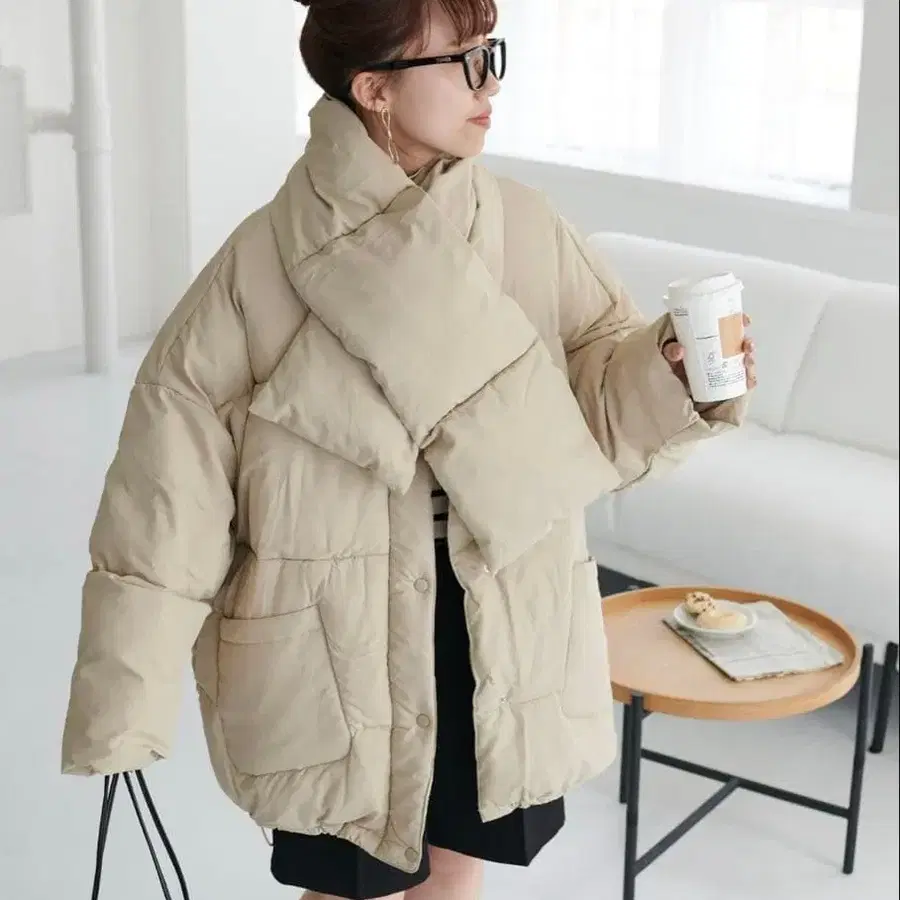 [ GYDA ] 베이지 후드 부착 다운 자켓