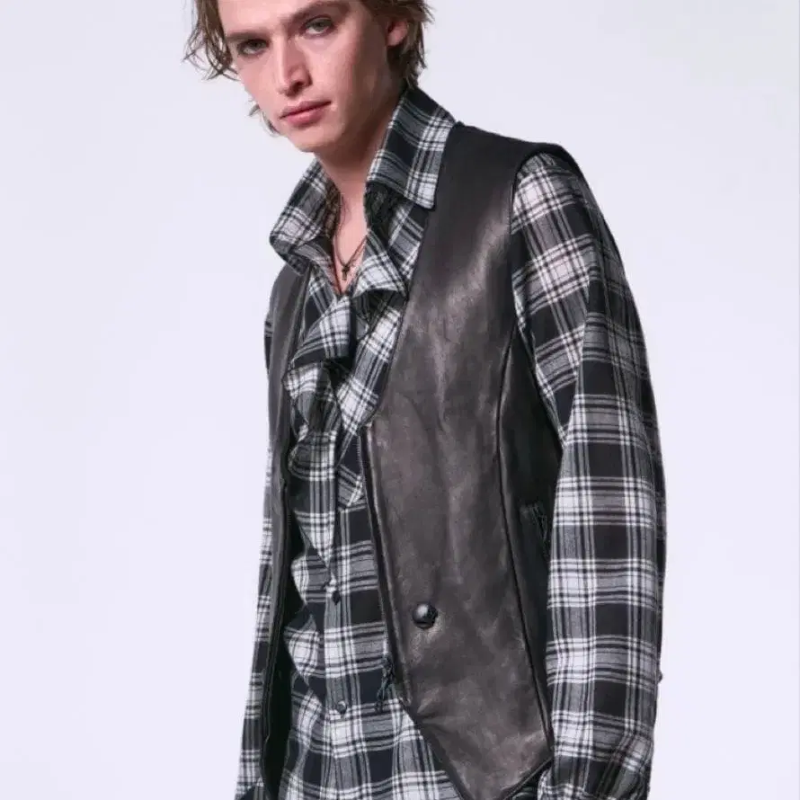 NOID 슬리브리스 체크 셔츠