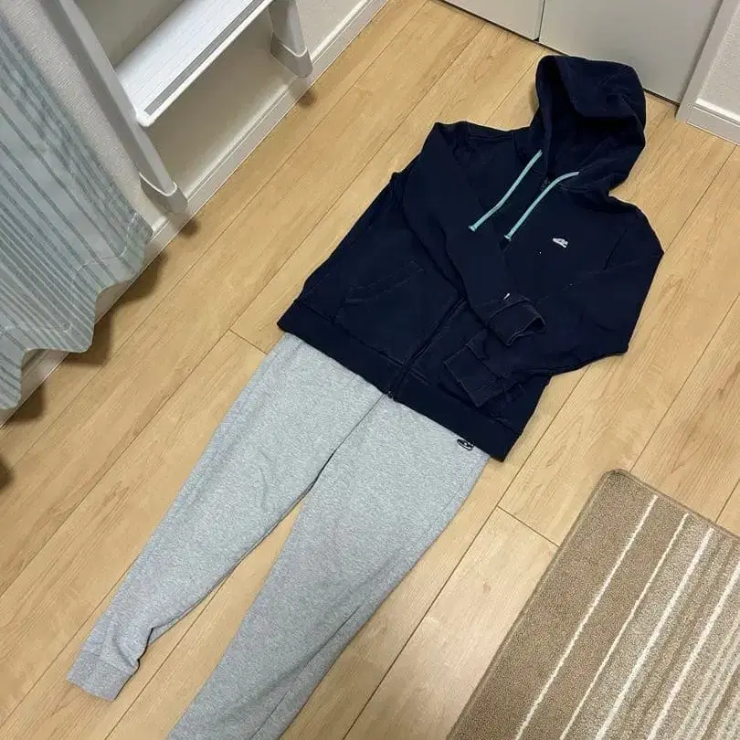 뉴발란스 셋업입니다. 연말연시 미니멀리스트를 위해 판매합니다. 사용감은 약간 있지만, 눈에 띄는 얼룩 등은 특별히 없습니다. 후드티는 XL 네이비 스웨트 팬츠는 L 그레이 스웨트 팬츠의 다리미 패치가 조금 떨어졌습니다. 사이즈 참조가 된다면, 판매자의 체형은 178cm, 75kg 다리 길이는 긴 편입니다. XL을 시착했을 때 조금 길어서 L 사이즈를 구매했습니다.