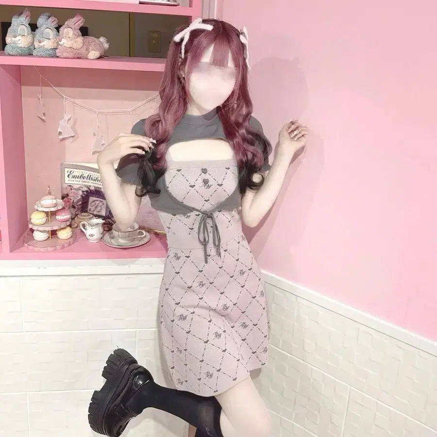 Honeymew HM 모노그램 리본 앙상블 원피스 핑크