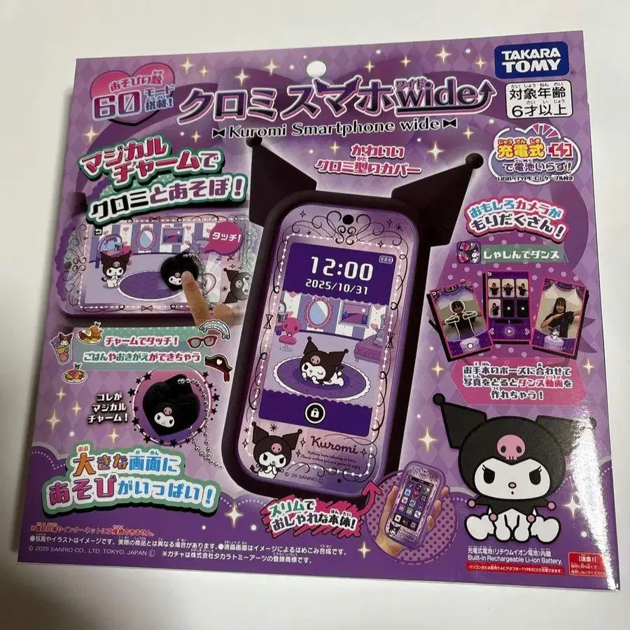 방문해 주셔서 감사합니다! 쿠로미 캐릭터가 디자인된, 60종류의 미니게임을 즐길 수 있는 스마트폰형 완구 - 브랜드: 타카라토미 - 상품명: 쿠로미 스마트폰 Wide - 대상 연령: 6세 이상 - 특징: 60종류의 미니게임 - 디자인: 쿠로미 캐릭터 디자인 - 기능: 디지털 참으로 놀 수 있음 잘 부탁드립니다!