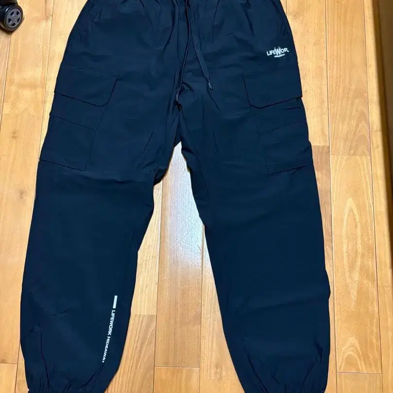 카고 스타일의 블랙 팬츠, 포켓 부착으로 실용적입니다. - 색상: 블랙 - 스타일: 카고 팬츠 - 브랜드: 한국 브랜드. LIFEWORK HIDEAWAY - 특징: 포켓 부착 방문해 주셔서 감사합니다. 사이즈 - L