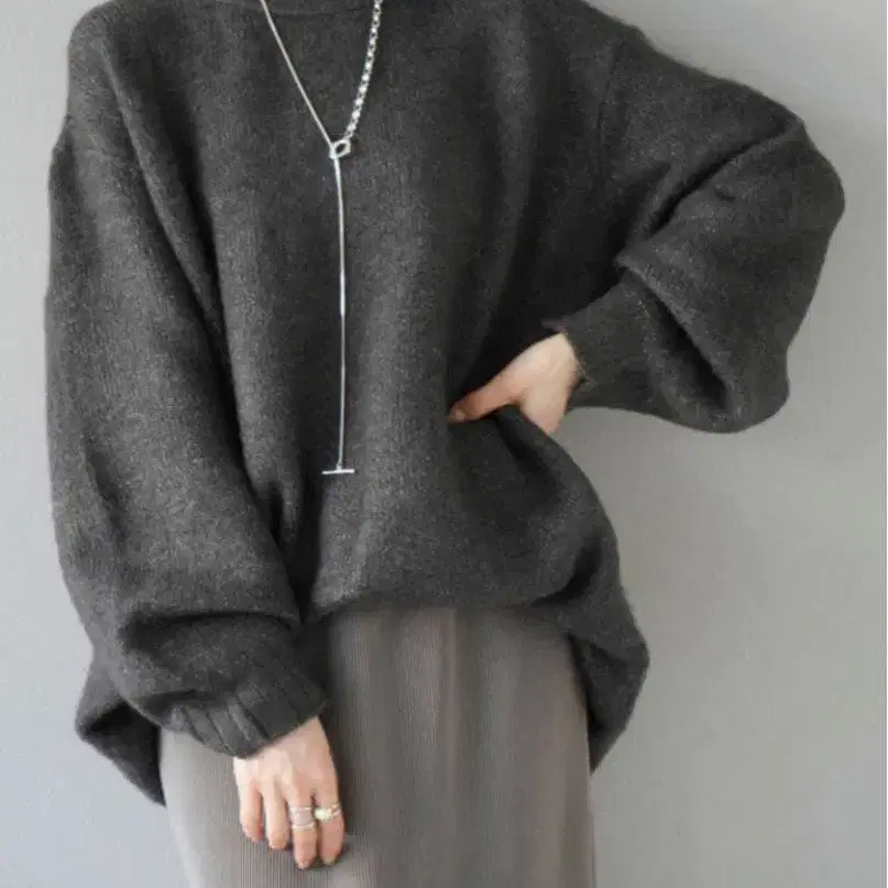 새상품 Lumier 뤼미에 크루넥 오버 니트 차콜 FREE