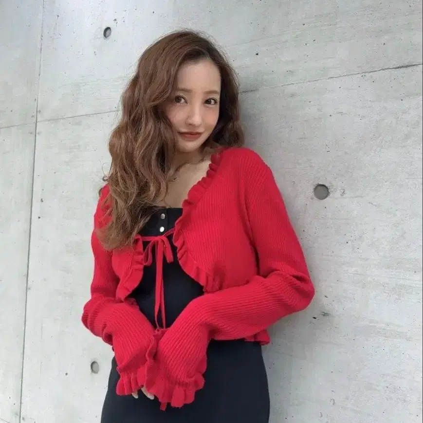 미사용 새상품입니다. 프릴과 리본이 특징인 빨간색 리브 가디건. - 색상: 빨간색 - 디자인: 프릴 장식, 리본 매듭 - 소재: 리브 - 스타일: 가디건 - 길이: 긴팔 방문해 주셔서 감사합니다.