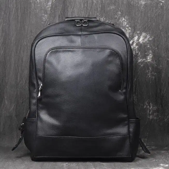 심플한 디자인의 가죽 백팩, 외부 지퍼 포켓 부착. - 색상: 블랙 - 소재: 소가죽 - 사이즈: 가로 30cm x 세로 42cm x 바닥 12cm - 포켓: 외부 지퍼 포켓 - 디자인: 심플한 디자인 - 스타일: 백팩 방문해 주셔서 감사합니다.