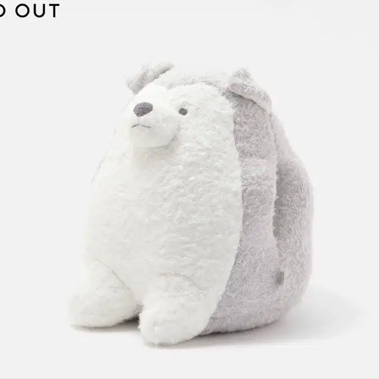 부드러운 플리스 소재의 곰 모양 봉제 인형, 그레이와 화이트 두 가지 색상으로 귀여운 디자인입니다.
