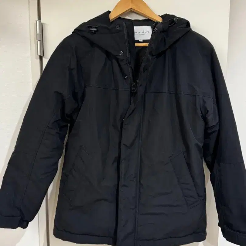 나일론 봄버 자켓 심플 충전솜 라운드 칼라 블랙 검정