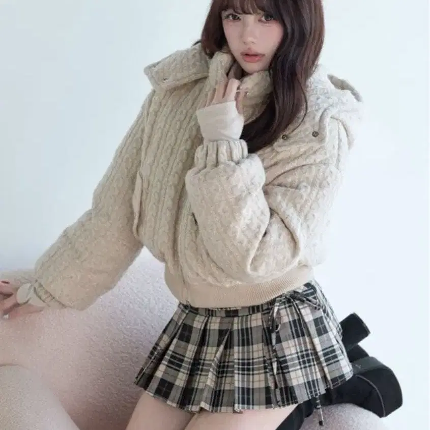 BunnyLis 케이블 니트 퀼팅 자켓