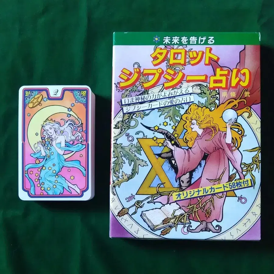 타로 집시 점술 타로 카드 오라클 카드 카드 매수: 58장 (56+2장) 발행: 신성 출판사 1992년 저자: 난조 타케시 이 상품은 타이틀에 [타로]라고 되어 있지만, 일반적인 타로 카드와는 다릅니다. 56장으로 점을 치는 것으로, 타로 카드의 마이너 아르카나를 사용한 점술이라고 생각하시면 이해하기 쉬울 것입니다. 1990년대 초반, 도내 서점에서 새 상품으로 구매했습니다. 1번 내용 확인 후 장기간 보관했습니다. 카드와 도서 모두 미사용이며 매우 깨끗합니다. 노후화 없이, 골동품 치고는 상태가 매우 좋습니다. ※ 검품은 하고 있지만, 미세한 데미지나 빛의 정도에 따라 보이는 흠집 등 놓친 부분이 있을 수 있습니다. 개인 보관품임을 이해하신 후 거래를 부탁드립니다.