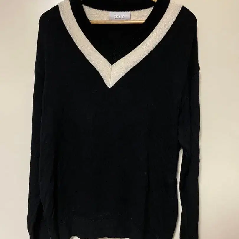 STUDIOUS의 실크 블렌드 V넥 아가일 니트입니다.