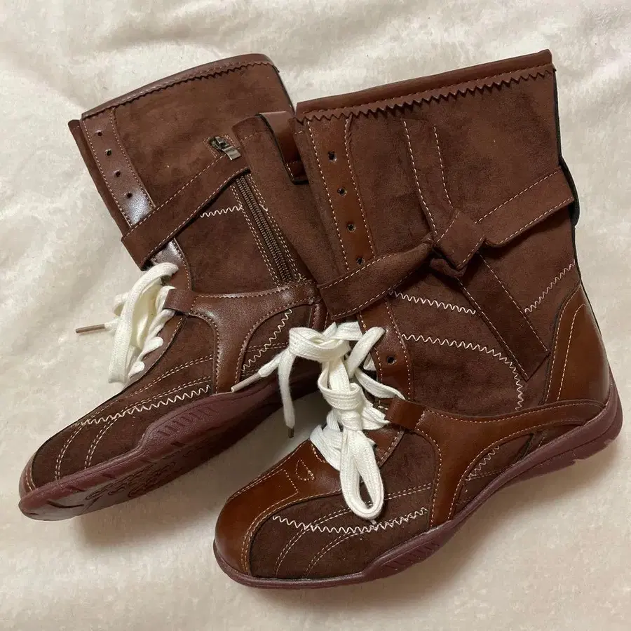 키다리 아저씨 레이스업 부츠 보아 가죽 갈색 브라운 24cm