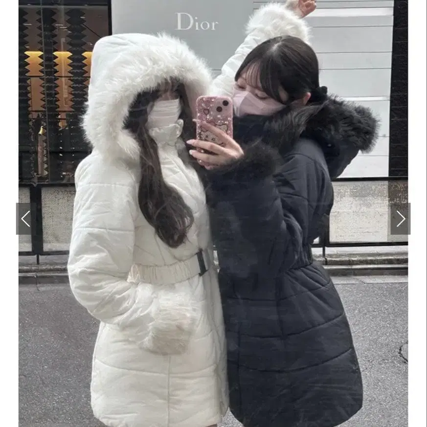 퍼가 달린 후드와 허리 벨트가 특징인 다운 자켓. - 색상: 블랙 - 스타일: 후드 부착 다운 자켓 - 디자인: 퍼가 달린 후드 - 특징: 허리 벨트 부착 - 색상: 화이트 방문해 주셔서 감사합니다.