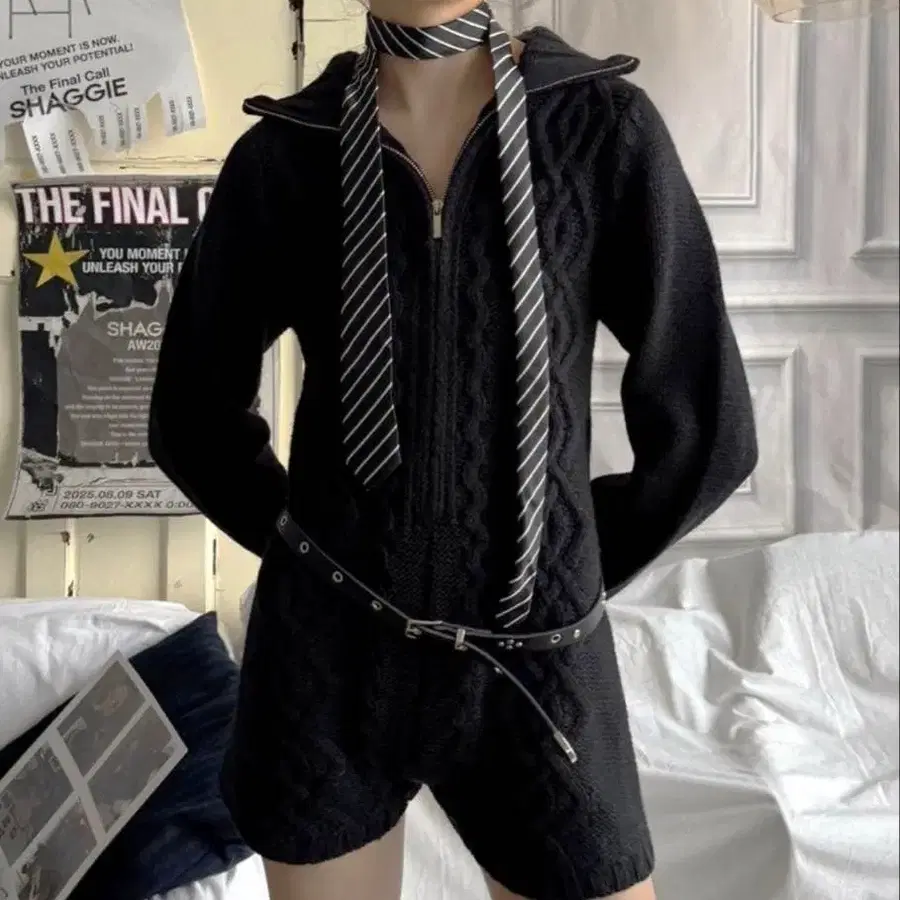 SHAGGIE 하이넥 지퍼 케이블 니트 올인원 헤이세이 y2k