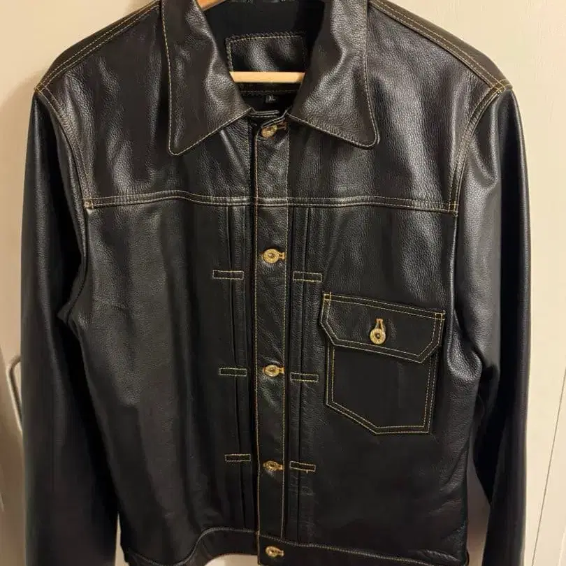 버튼이 달린 블랙 가죽 자켓, 캐주얼 스타일에 최적. - 색상: 블랙 - 디자인: 버튼 부착, 포켓 부착 - 안쪽 소재: 블랙 원단 - 스타일: 캐주얼 - 특징: 스티치가 돋보이는 디자인 아이템 ] 노브랜드 가죽 자켓 [ 색상 ] 블랙/검정 [ 소재 ] 소가죽 100% 안감 - 폴리에스테르 100% [ 사이즈 ] XL(LL) 사이즈 [평평하게 놓았을 때 치수](cm) 기장 65 가슴 너비 51 어깨 너비 45 소매 길이 64 방문해 주셔서 감사합니다. 사이즈 - XL(LL)