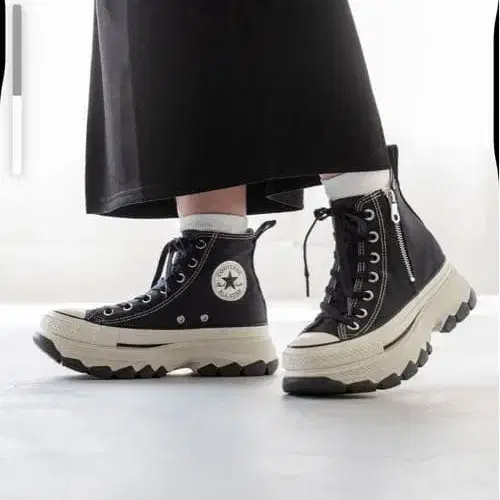 스테디셀러인 올스타 디자인과 트레킹 슈즈를 연상시키는 통굽 밑창을 조합한 모델.