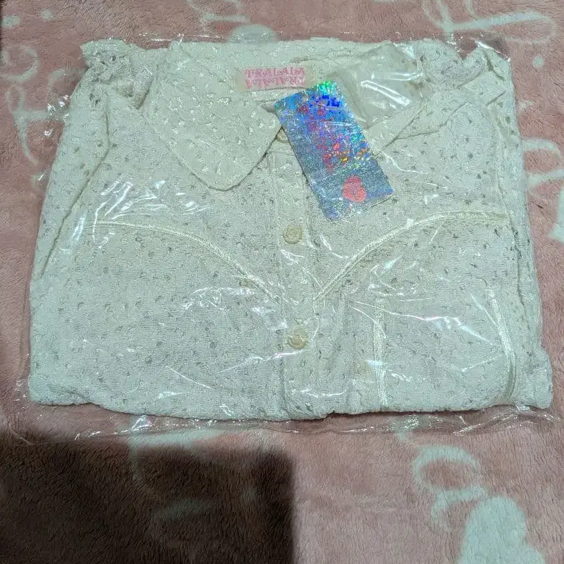 자동 번역되었어요. 원문보기크림색 레이스 소재의 긴팔 셔츠, 버튼 포함 미사용 새상품.
