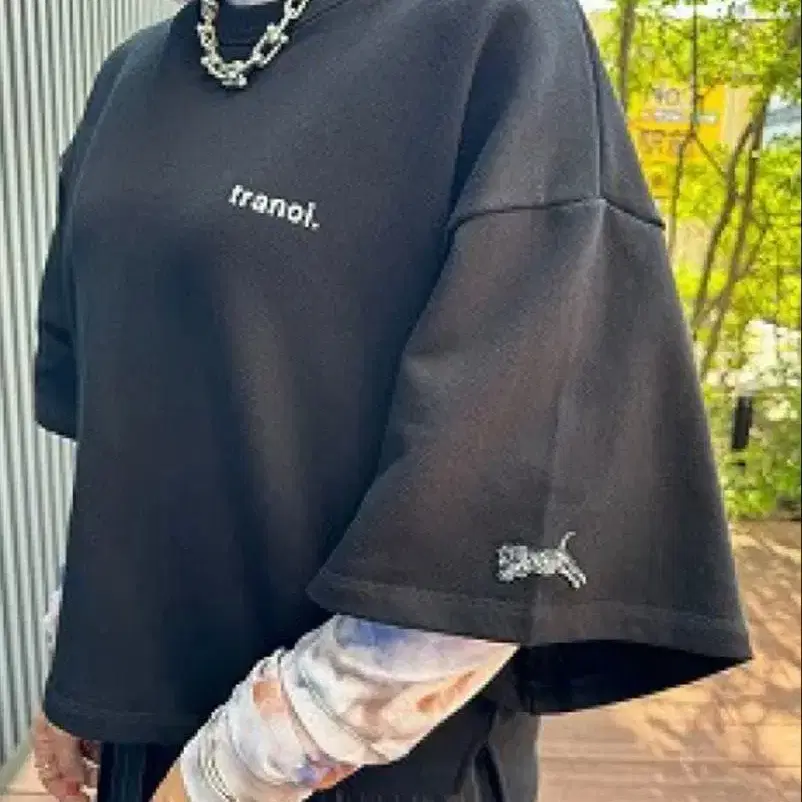 트라노이의 호랑이 자수 블랙 반팔 맨투맨입니다. 편하게 입기 좋습니다. 이너를 넣어 길게 입을 수 있습니다. 정가 12100엔 스콧 클럽 야마다야