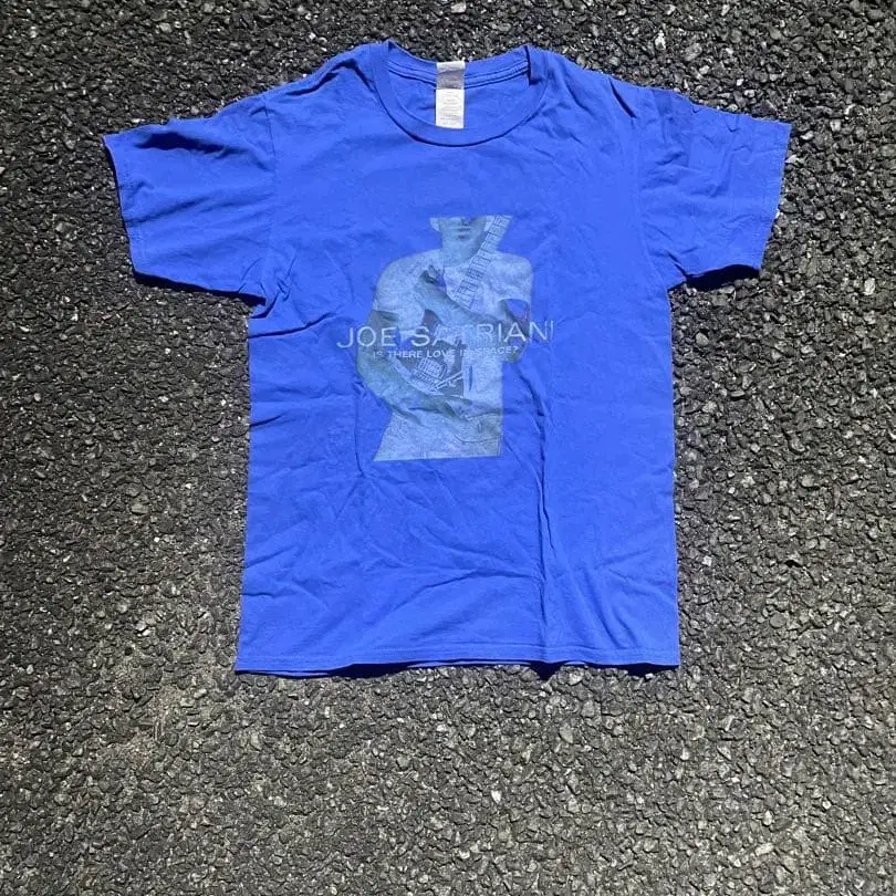 조 새트리아니의 그래픽이 들어간 파란색 T셔츠. - 색상: 파랑 - 디자인: 조 새트리아니 그래픽 프린트 - 텍스트: JOE SATRIANI IS THERE LOVE IN SPACE? 방문해 주셔서 감사합니다. 이 상품은 구제 의류이므로 약간의 흠집이 있습니다. 신경 쓰이시는 분은 삼가해 주시기 바랍니다.