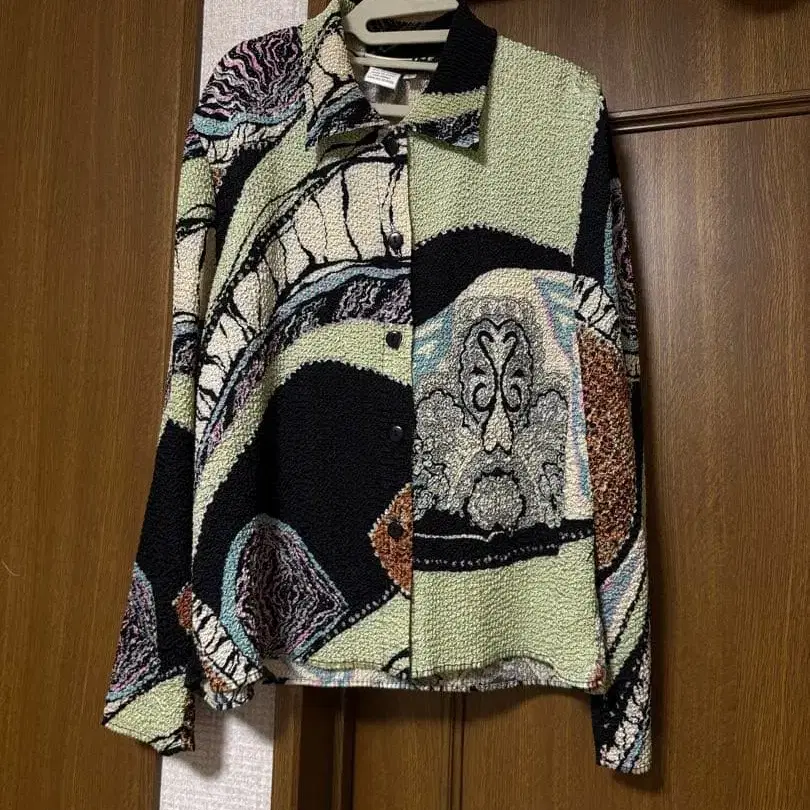 다색 패턴의 텍스처 원단 셔츠, L 사이즈 구제 의류 매장에서 한눈에 반해 구매했지만, 아쉽게도 판매하게 되었습니다. 눈에 띄는 흠집이나 얼룩은 없습니다.