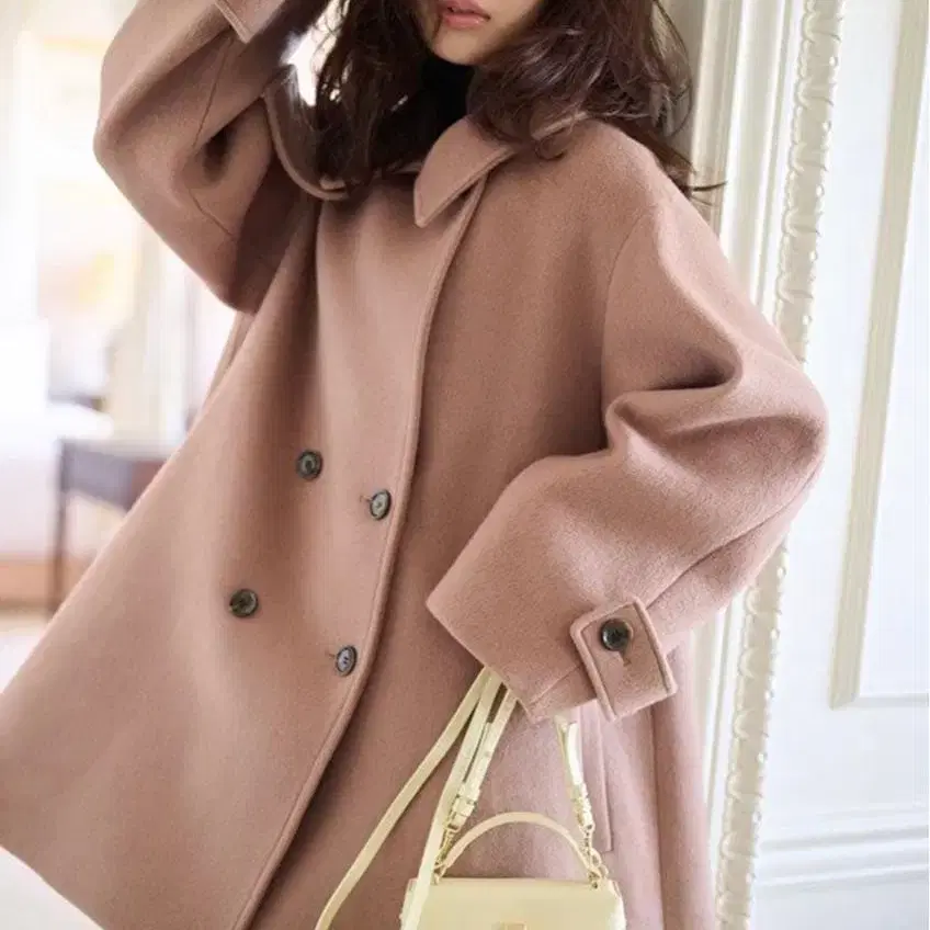 MADUSON 울 더블 체스터 코트 카멜 온워드