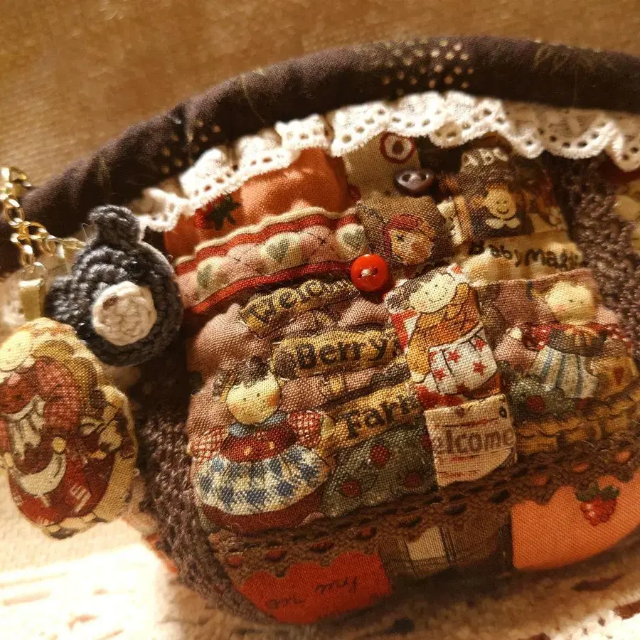 핸드메이드 동글 파우치 코코아 핑크 계열