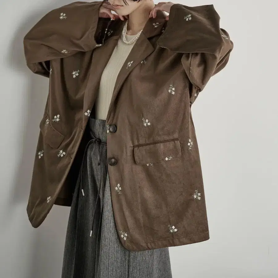 THE YOn 플라워 자수 벨로아 자켓/브라운 [ 정가 ] 9,900 시착만 한 상품입니다. ZOZO에서 구매했습니다. 어울리지 않아 판매합니다. 아래 상품 설명----- THE YOn 2025 Autumn Collection 시선을 사로잡는 메인 자켓 [ Design ] 시즌감 있는 벨로아 소재로 제작한 테일러드 자켓. 전면에 플라워 자수를 넣어 시선을 끄는 디자인. 부드럽게 떨어지는 원단이 자켓 특유의 딱딱한 느낌을 완화시켜 줍니다. 오버사이즈 핏으로 내추럴 무드의 코디를 연출할 수 있습니다. 안감: 없음 광택감: 없음 비침: 없음 신축성: 없음 원단 두께: 보통 가슴 너비 59 어깨 너비 56 기장 76 소매 길이 59