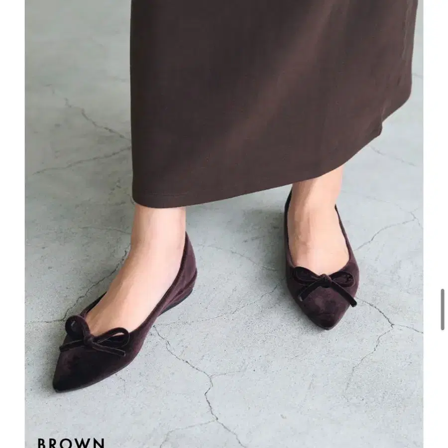 펌프스 23 로우힐 다이애나 DIANA 스웨이드 리본 플랫 브라운
