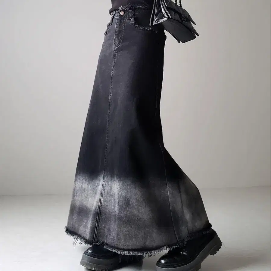 • 데님 롱 스커트 블랙 데님 스커트