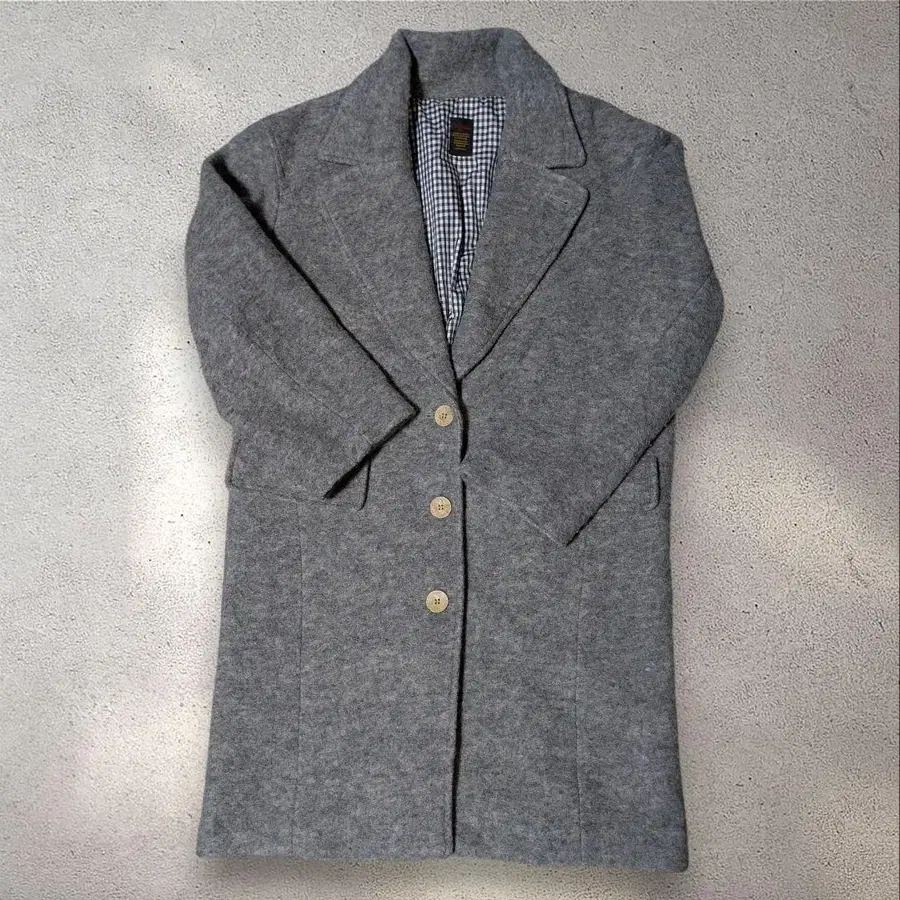울 소재의 그레이 롱 코트, 체크 무늬 안감 부착. - 색상: 그레이 - 소재: 울 - 안감: 체크 무늬 - 버튼: 4개의 버튼 - 스타일: 롱 코트 방문해 주셔서 감사합니다.